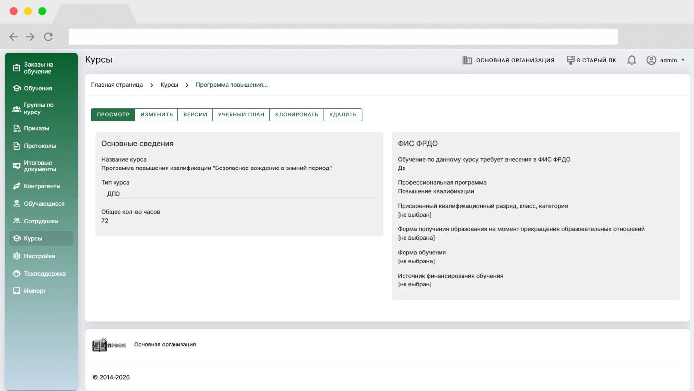 Добавляйте информацию о курсах обучения: количество часов, стоимость, сведения для ФИС ФРДО и реестра Минтруда