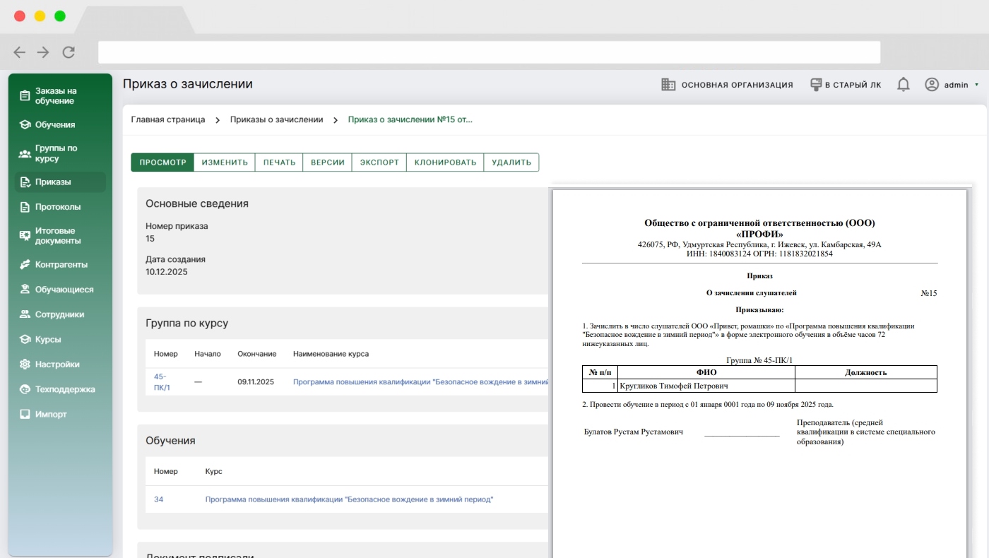 Документируйте зачисление и отчисление в приказах тут же в системе